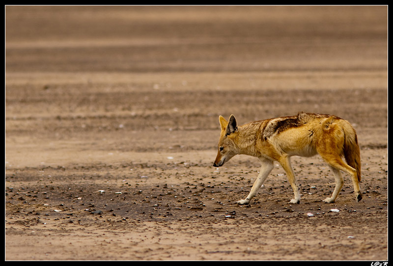 Notre ballade se poursuit, un chauffeur voit un serpent sur la piste. On s’arrêtera tous pour le voir. Il est minuscule, mais apparemment loin d’être inoffensif. Sa morsure sans soin entraine la mort dans la journée. Les guides nous montrent aussi les melons du désert, qui sont des réserves d’eau pour les animaux traversant ou vivant dans le désert. Ils nous font gouter les graines qui sont comme des arachides. Des traces de chacal sont visibles dans le sable tout au long de notre parcours. On aura la chance d’en voir un sur le retour grâce à Laurent et son terrible "œil de lynx".