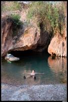 Les douches et les WC sont des cabanes en pailles avec à peine une porte ! Mais il y a derrière le camping une superbe retenue d’eau qui forme une très belle piscine naturelle, ou seul Christophe se baigne.