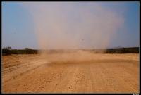 Nous partons ensuite pour Opuwo. On roule tranquille, car on a peur d’une nouvelle crevaison. On croise beaucoup d’Himbas. Ils ont même installé un marché d’artisanat local pas très loin du camping. Une mini-tornade croise notre route.