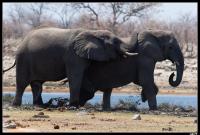 On rentre à 13h00 au camp de Halali, fourbus, fatigués avec cette chaleur étouffante : pas un coin d'ombre ici ! De plus notre emplacement de camping a été envahi par nos deux couples de voisins retraités sans gènes. Marie, Fatiha et Christophe repartent pour un "drive" à 17h00, tandis que Laurent préfère rester près de la piscine à cause de la chaleur. Et il a raison car nous n'avons vu que 5 ou 6 zèbres et un dik-dik !